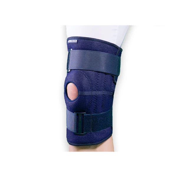 مفصل زانو شامل مفاصل تیبیوفمورال-پتلوفمورال-وتیبیوفمورال فوقانی میباشد. درون مفصل دو منیسک نیمدایره ای شکل که ازجنس فیبر و غضروف هستند بین کوندیل ران و سکوی ساق قرار گرفته اند.عملکرد عمده انها جذب ضربه وتقویت ثبات مفصل زانو است.لیگامانهای بسیاری برای فراهم کردن ثبات وجلوگیری از حرکات اضافی اطراف زانو وجود دارد.لیگامان صلیبی قدامی-لیگامان صلیبی خلفی-لیگامان جانبی داخلی و لیگامان جانبی خارجی لیگامانهای کلیدی برای ثبات مفصل زانو هستند. خصوصیات محصول: پد دایره ای دور کشکک محافظت و ثبات خوبی برای جلوگیری از جابجایی کشکک فراهم می کند. دو آتل دو طرف زانوبند ساپورت ثبات مناسبی برای زانو فراهم می کند. دو ولکرو فیتینگ راحت و ثبات در حین فعالیت فراهم می کند. در موارد تاندونیت و آرتریت درد را کاهش می دهد. گرمای بدن را نگه میدارد تا در مفصل زانو جریان خون افزایش یابد . این محصول به صورت فیری سایز می باشد. نحوه استفاده از زانوبند چهار فنره الاستیک: پا را داخل زانوبند قرار دهید و به سمت بالا ی زانو بکشید. مطمئن شوید سوراخ کشکک دقیقا کشکک را احاطه کرده است. استرپ های بالا و پایین را از درون لوپ رد کرده و به اندازه فشار مطلوب ببندید.