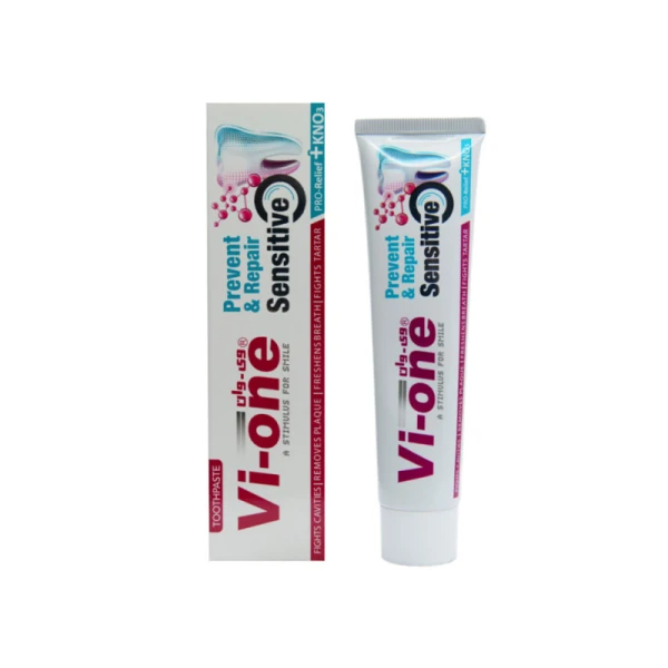 تفاوت اصلی بین خمیردندان معمولی و خمیردندان های مخصوص دندان حساس وی-وان این است که دومی دارای مواد افزودنی خاصی است که به حساسیتزدایی یا مراقبت از قسمتهای حساس دندان کمک میکند. عاج، لایه زیر مینای دندان شما است. وقتی مینای دندان از بین میرود و یا نازک میشود، عاج که به لمس و دما حساس است، در معرض عوامل بیرونی قرار میگیرد. خمیردندان مخصوص دندان حساس، نیترات پتاسیم بیشتری در خود دارد که به مرور جاهایی از مینای دندان را که نازک شدهاند، ترمیم میکند. به این ترتیب، لایه محافظ دندان بازسازی شده و عاج در معرض عوامل بیرونی قرار نمیگیرد.