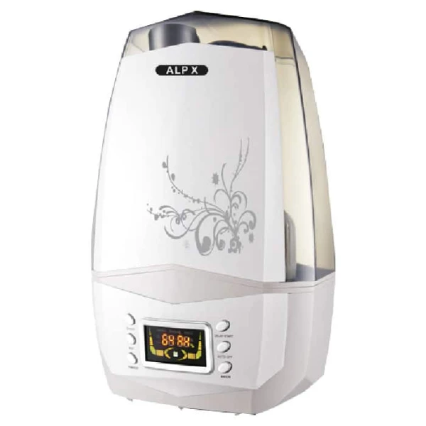 دارای صفحهنمایش دیجیتال و ریموت کنترل برای تنظیم عملکردهای دستگاه از راه دور است. دارای قابلیت تنظیم رطوبت محیط از 40 تا 95 درصد است. همچنین تایمر دستگاه را میتوان بین 1 تا 24 ساعت تنظیم کرد تا دستگاه را به شکل خودکار روشن و خاموش کند. از اینها که بگذریم به فناوری یونی مجهز شده است که یون منفی تولید میکند. یونهای منفی به آلودگیها، میکروبها و ویروسهای دارای بار مثبت میچسبند و آنها را پایین میکشند. روشن و خاموش بودن هرکدام از این قابلیتها روی صفحهنمایش دستگاه نمایش داده میشود. مخزن آب دستگاه 5.7 لیتر ظرفیت دارد و پشت آن از پلاستیک شفافی ساخته شده که میتوان سطح آب درون آن را مشاهده کرد. حداکثر شدت بخار دستگاه 300 میلیلیتر در ساعت است. اگر دستگاه با این شدت بخار کار کند، تقریباً 19 ساعت طول میکشد تا آب مخزن تمام شود. با تمام شدن آب مخزن مبدل اولتراسونیک متوقف شده و نشانگر صفحه روشن میشود. در بالای مخزن دستگیرهای قرار دارد که بلند کردن و نصب مخزن روی پایه را راحتتر میکند. زیر مخزن نیز دستگیرهی دیگری وجود دارد که هنگام پر کردن مخزن بزرگ دستگاه بسیار به کار میآید. دریچهی پر کردن مخزن، دارای فیلتری ضد رسوب است. این فیلتر مواد معدنی موجود در آب را قبل از رسیدن به مبدل اولتراسونیک جذب میکند. بااینحال پس از مدتی روی مبدل رسوب مینشیند. برای تمیز کردن مبدل باید چند قطره سرکه روی آن ریخت و توسط برسی که زیر مخزن تعبیه شده آن را تمیز کرد. خروجی بخار دستگاه دارای نازلی است که میتوان آن را چرخاند و جهت خروج بخار را تغییر داد. میتوان نازل را برداشت تا بخار از روی دستگاه پایین بریزد. توان مصرفی دستگاه 30 وات است. بهطور خلاصه دستگاه بخور سرد آلپکس دارای صفحهنمایش دیجیتال، ریموت کنترل، قابلیت تنظیم رطوبت محیط، تایمر 24 ساعته، یونساز، مخزن 5.7 لیتری، قابلیت تنظیم شدت بخار، حداکثر شدت بخار 300 میلیلیتر در ساعت، دو دستگیره در بالا و پایین مخزن، فیلتر ضد رسوب، نازل چرخان و توان 30 وات است