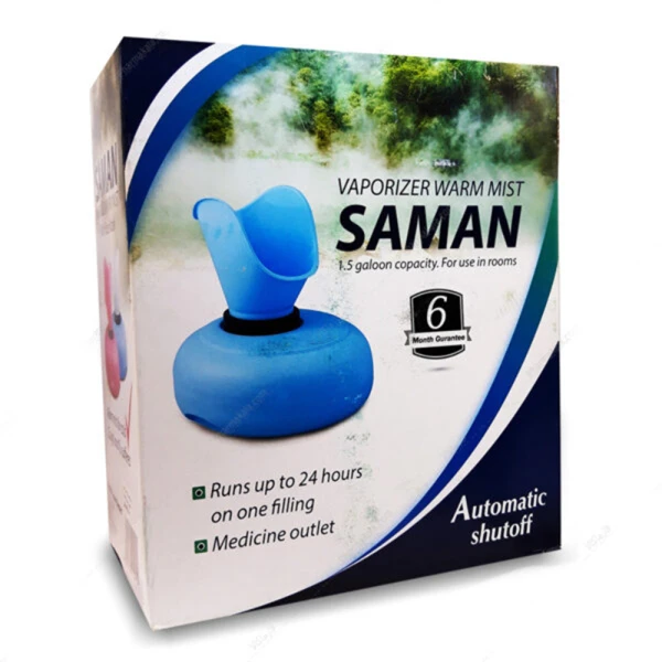 دستگاه بخور گرم سامان در طراحی زیبا و گنجایش 4 لیتری تولید شده است. این دستگاه مجهز به سیستم رسوب زدایی بوده و بعد از اتمام آب مخزن به طور خودکار خاموش می شود. از دستگاه بخور گرم در تسکین گرفتگی بینی، عفونتهای مجاری تنفسی، کاهش شدت درد و سرفه های خشک استفاده می شود. این دستگاه دارای محفظه جدا برای ریختن داروهای بخور و استنشاق آن است. این دستگاه به طور مداوم بین 10 تا 14 ساعت تولید بخار می کند و بخار آن ضد ویروس و ضد میکروب است و در کاهش عوارض سرماخوردگی و آسم به ویژه در کودکان میسر است. بعضی از پزشکان با تجویز دارو هایی برای بخور صورت و یا محیط خانه به بهبود بیماری یا جلوگیری از بیماری های احتمالی کمک می نمایند .
