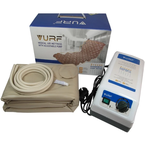 دستور العمل استفاده از دستگاه تشک مواج وورف VURF : شلنگ اتصال هوا را به پمپ تشک مواج هوا متصل کنید تشک هوا را بر روی تخت قرار دهید و مطمئن شوید که شلنگ هوا پیچ خورده و گره زده نباشد دستگاه را به برق متصل کرده و کلید روشن دستگاه را بزنید فشار باد خروجی دستگاه را با ولوم تنظیم کننده، تنظیم کنید